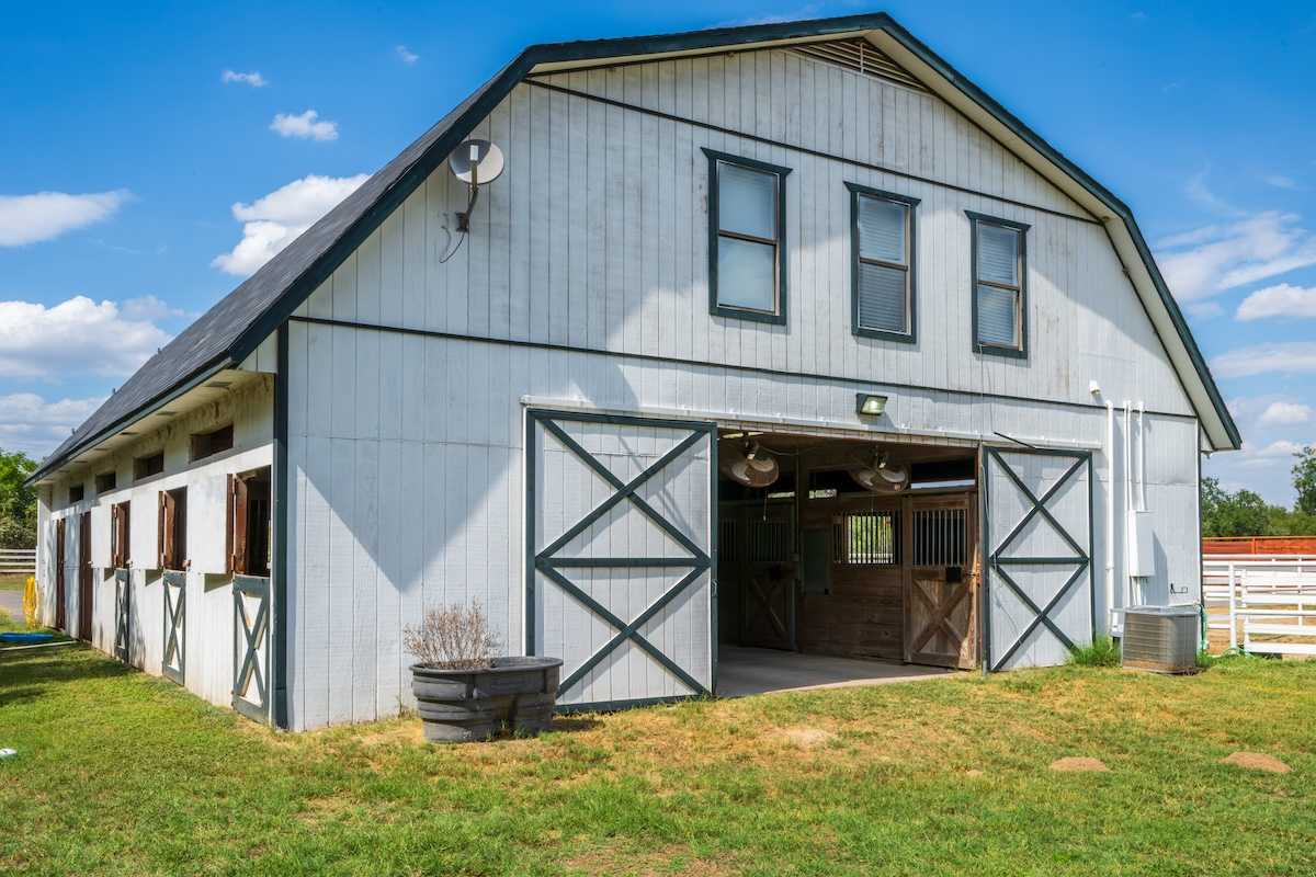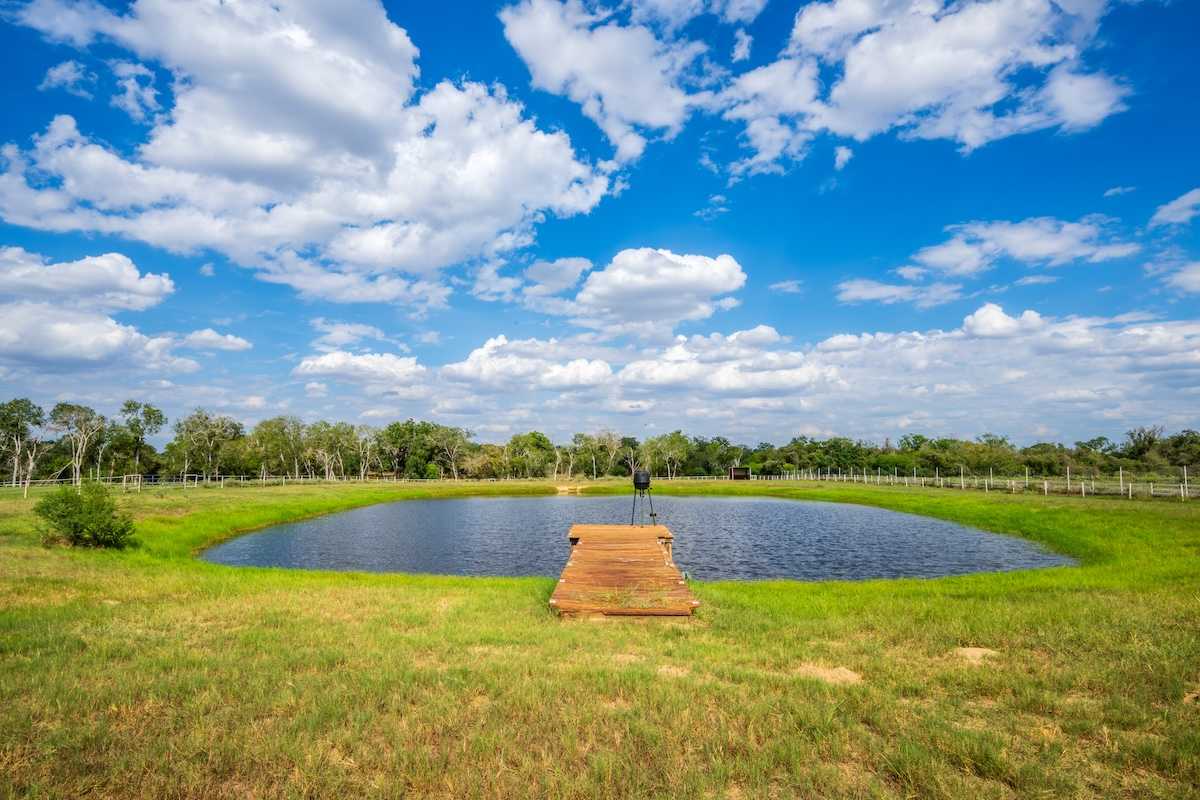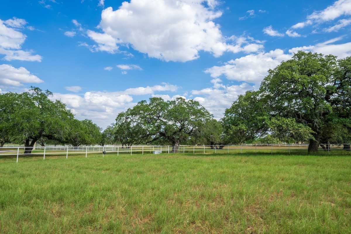 Welcome to Atascosa Horse Farm. This stunning horse property offers incredible amenities for equestrian enthusiasts. Boasting a seven-stall horse barn with living quarters, hot walker, arena, and multiple pastures, this property is set up perfectly for any horse operation. To further complete this property, a beautiful three-bedroom home with a cozy in-home movie theatre overlooks the oak-blanketed farm. This turnkey 27-acre property is nestled within minutes of the city of Pleasanton and is ready for its next owner. Give us a call today to come take a look!