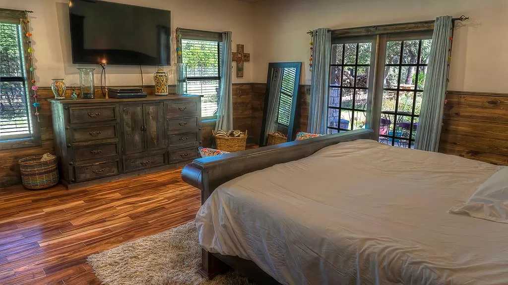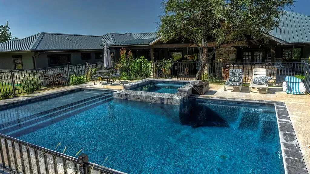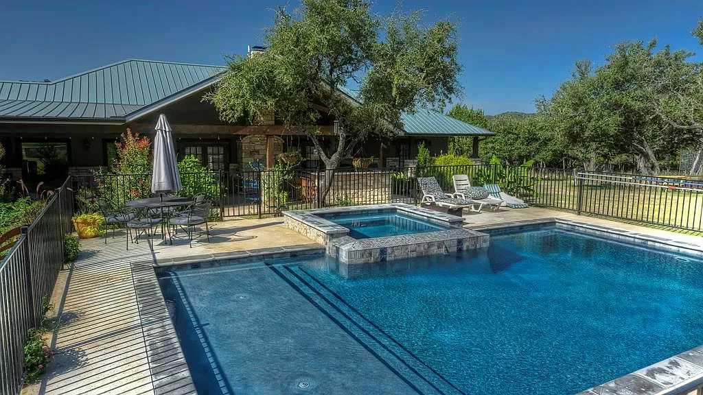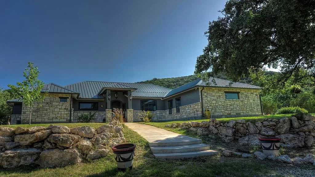 There is a 4,053 sf custom built home on the property that can also be accessed both through the ranch as well as via Mariposa Ave from River Road. HOA membership provides access to a private park on the Frio River. The home has 4 bedrooms each with an en-suite bath, and an additional bedroom or office. There are two living rooms, a spacious master bath, fireplace, heated swimming pool, hot tub, and outdoor bar and grill. There is an attached 3-car garage as well as metal barn and workshop. Concan Water Supply provides water to the house and a separate water well is used for irrigation.