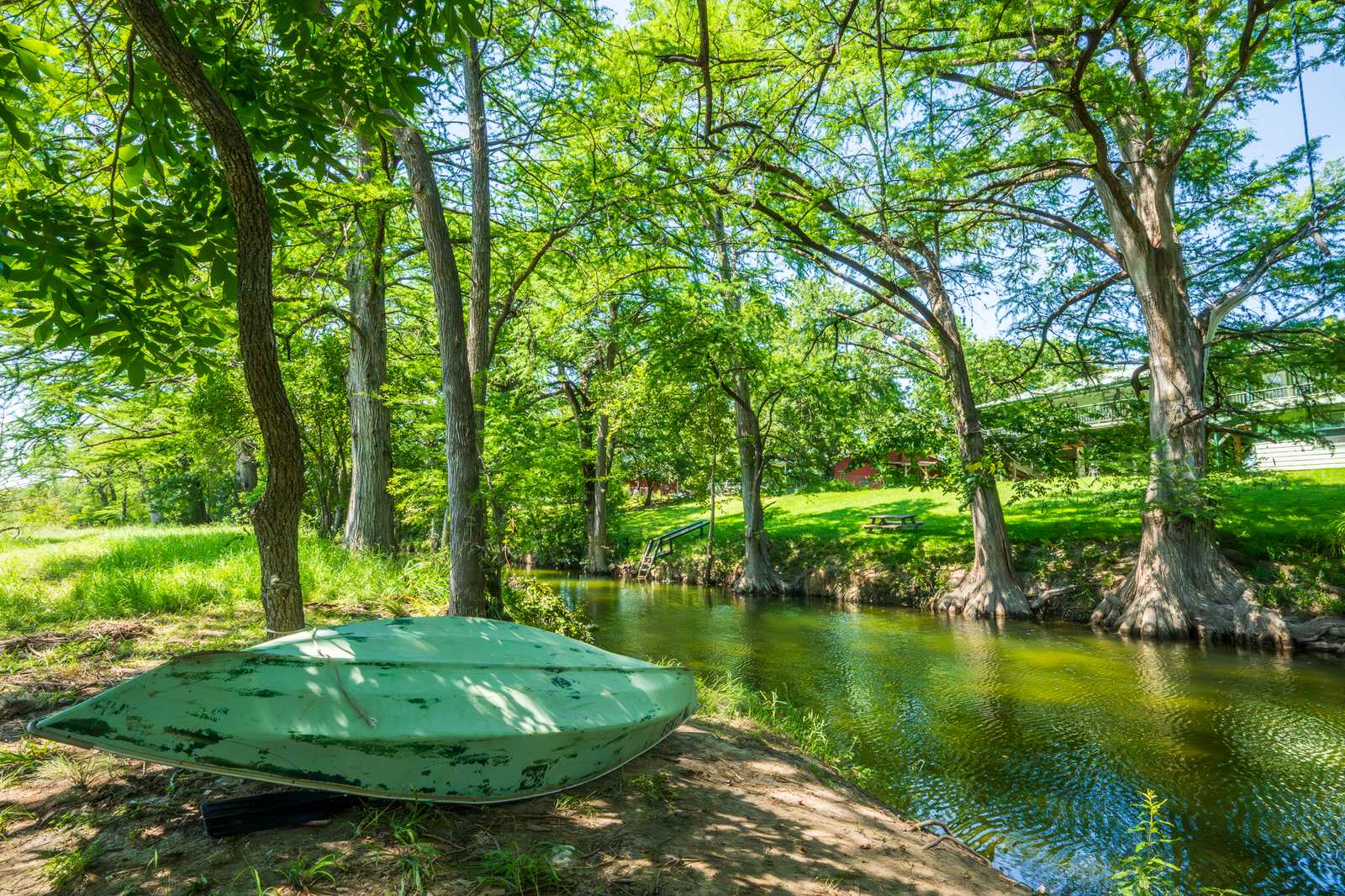 The approximately 300 feet of private river frontage is lined by cypress trees and provides a picturesque hill country setting perfect for swimming or canoeing. The home itself is surrounded by beautiful live oak trees and has a detached storage shed. The balance of the property has a combination of manicured lawn and native landscape frequented by a variety of wildlife.